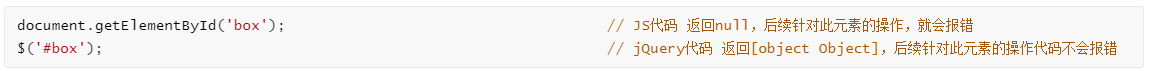 所以,jQuery无论是获取存在,还是不存在的元素,其结果都是返回[object Object],jQuery内部有晚上的容错机制,这样如果网页上因为某种原因删掉某个元素,这个网页用jQuery写的js代码也不会报错,但如果是用原生JS写的话,就会报错。JS为避免此种问题,就需要事先对元素的存在与否进行判断。如果要操作的元素很多,对每一个元素都进行判断的话,会非常繁琐。这也是jQuery一个很大的亮点所在。