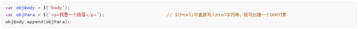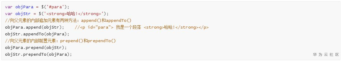 注意:无论是用JS还是jQuery,创建的新元素和文本节点都不会自动添加到网页文档中,都需要进一步追加到父节点的操作才能在网页中显示。