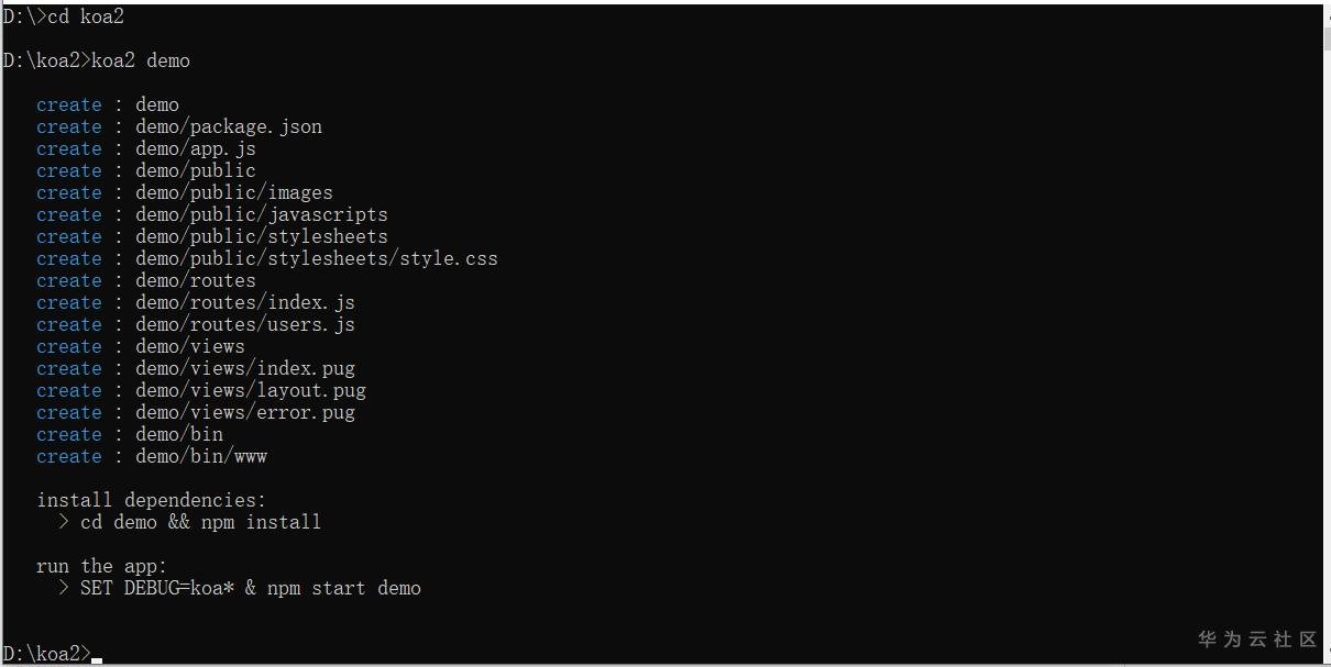 使用koa2命令创建Web项目