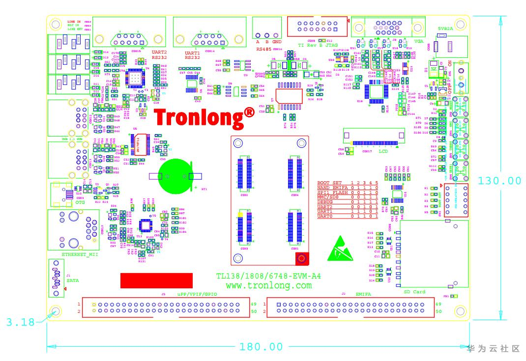 TL6748-EVM是一款基于广州创龙TMS320C6748核心板SOM-TL6748设计的DSP开发板,它为用户提供了SOM-TL6748核心板的测试平台,用于快速评估SOM-TL6748核心板的整体性能。