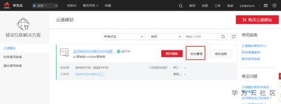 云速建站的产品的购买及配置:对于云速建站产品的购买,推荐大家购买华为公有云官网三年的产品,因为有活动购买三年送两年,非常给力。具体配置都是傻瓜式的拖拽,大家可以参见官方文档:https://bbs.huaweicloud.cn/blogs/75caae5ee7d811e8bd5a7ca23e93a891