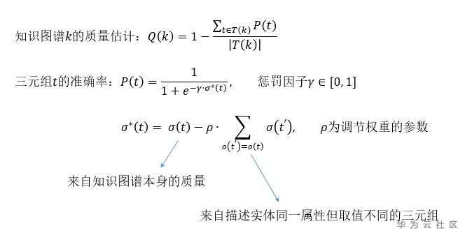 在此基础上,可以通过迭代的方法来计算每个知识图谱的质量Q(k)和每个三元组的准确率P(t)。在初始化过程中,为每个知识图谱设置相同的质量值(如知识图谱的平均质量估计值),然后进入迭代计算。在每轮迭代中,首先通过知识图谱的质量来计算每个三元组的准确率,然后根据所有三元组的准确率来重新计算每个知识图谱的质量。依次迭代,直至收敛,即每个指标的变化值都小于某个阈值。