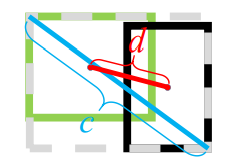 图5 绿色表示预测框,黑色表示目标框,d表示两个框中心点之间的欧式距离,c表示最小公共区域对角线的长度