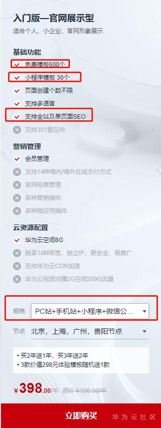 我们以最便宜的入门版为例,支持PC 小程序 手机 微信公众号,节省了很多人力及时间,首先我们不用 原型 和 UI了,完全可以通过浏览模板市场来确定需要哪种效果的模板。