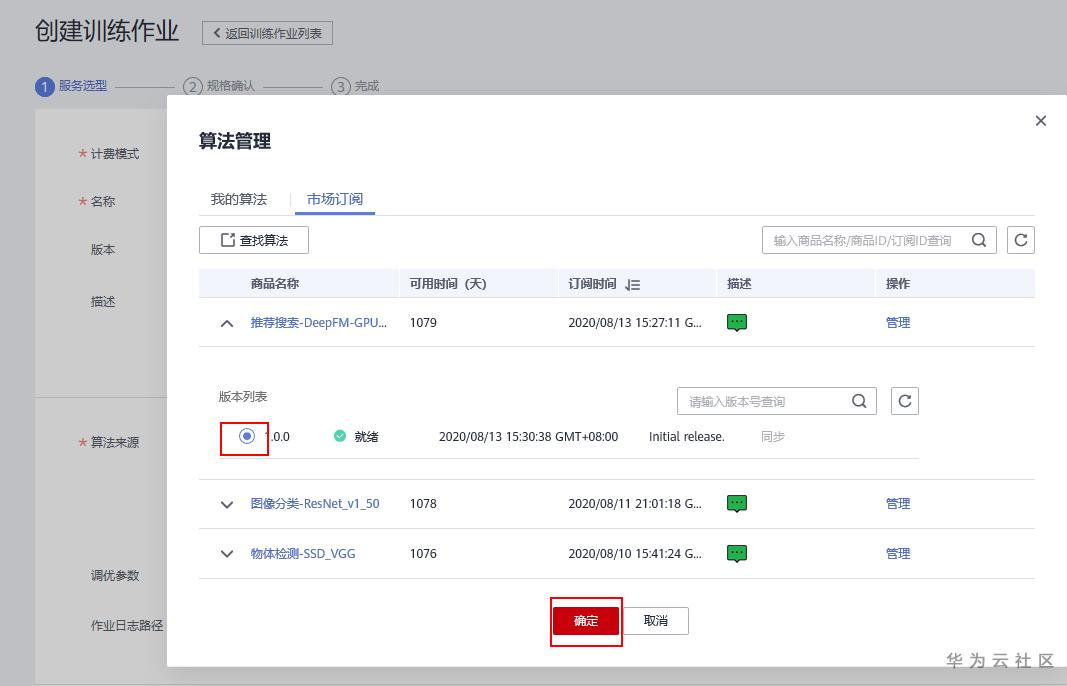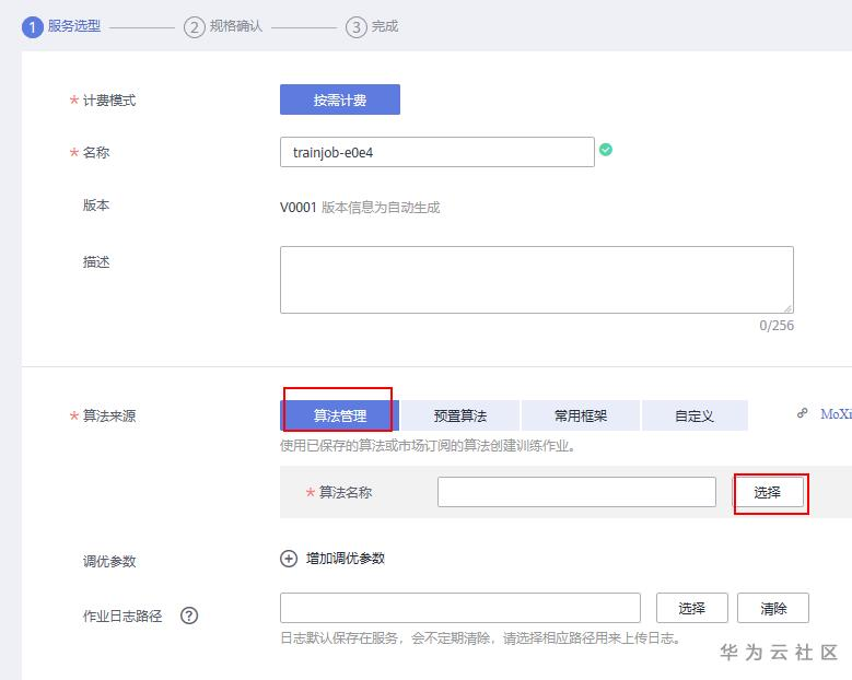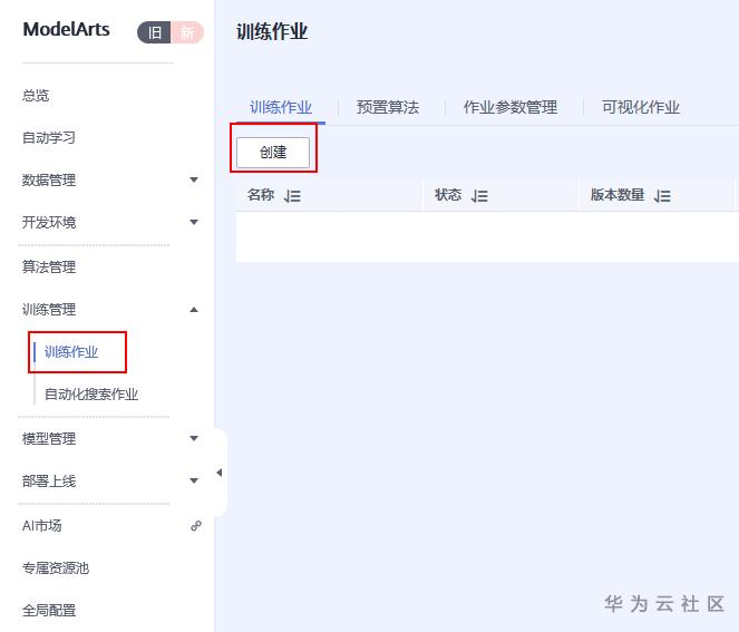 选择创建训练作业
