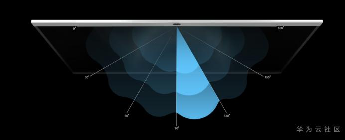 不可思议的是,华为企业智慧屏提供8米距离的拾音,究其原因,在于它竟然配备了12个线性阵列麦克风,正面覆盖范围可达180度,有效拾音。