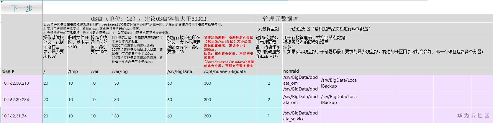 节点磁盘信息页面主要用来配置服务器cpu、内存、磁盘以及服务角色磁盘分配信息