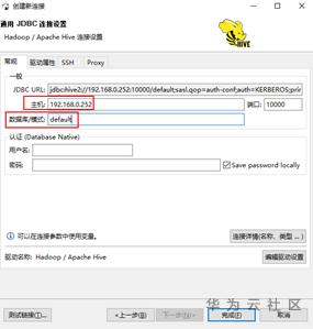 主机为任一hiveserver所在节点ip,填写需要连接的数据库(如:default)