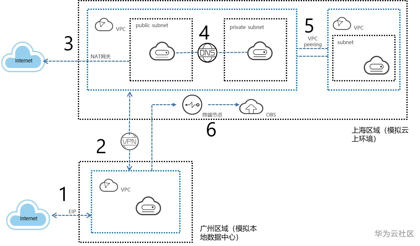6、配置VPC终端节点内网访问OBS 如果你希望自己的本地数据中心通过VPN或者云专线以内网方式访问OBS服务,可以通过创建终端节点连接终端节点服务实现。