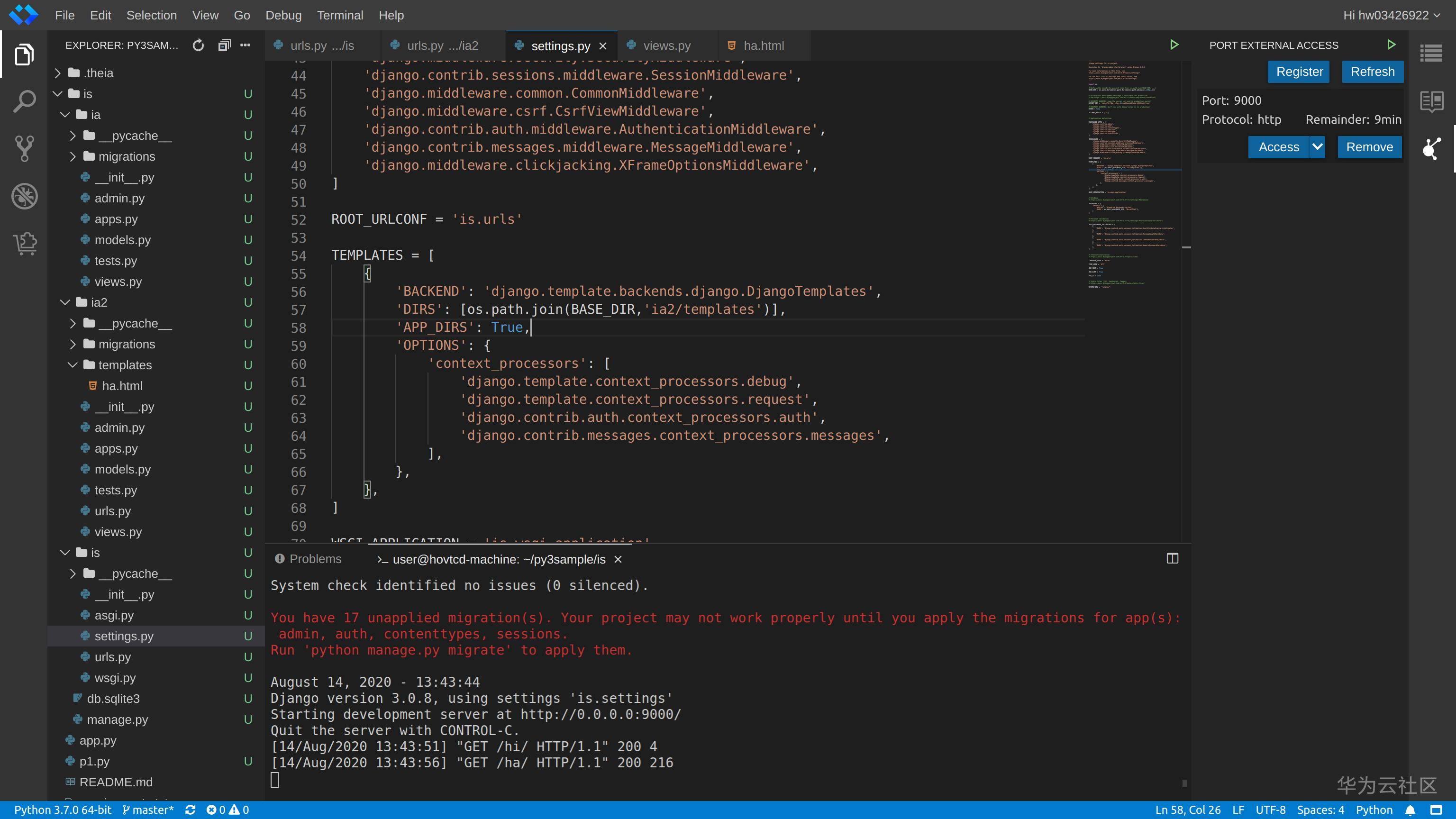 CloudIDE却有本地pycharm比不上的,那就是当你编写模板页面html时,CloudIDE就像VS Code一样的方便,