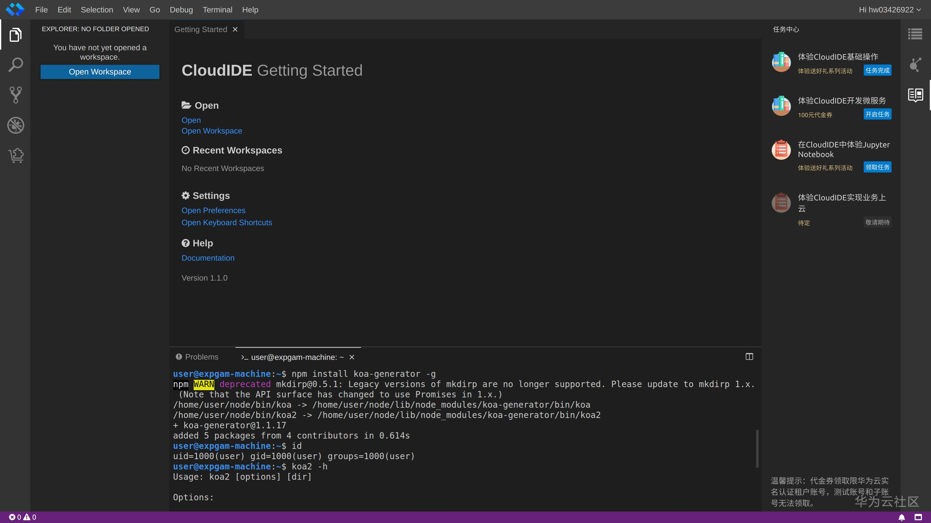 如果使用CloudIDE,网页上点点,新建一个node.js技术栈的实例,基本环境就给你准备好了,直接上手操作,npm直接用,网络没毛病