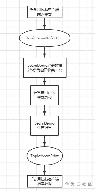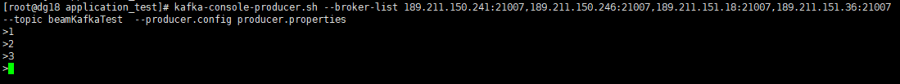 启动beamDemo程序,然后用Kafka客户端脚本打开生产者和消费者。