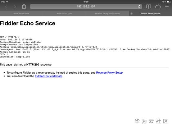 在终端上打开浏览器,输入http://hostip:8888,点击证书FiddlerRoot certificate,选择安装,这样fiddler就可以看到终端和后台的https消息了。