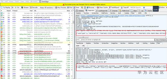在终端上打开应用,Fiddler会收到每个从终端发给后台的http消息,考虑家里同一个后台环境多个人在用,看epg的日志不是很方便,这种方法可以替代看服务器侧的日志,提升效率。如下图,是终端调用Authenticate接口,可以很方便的看到客户端的请求和响应消息