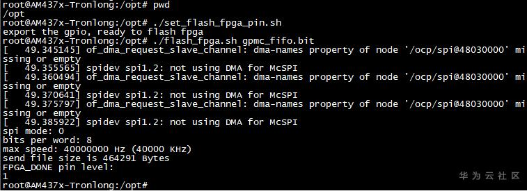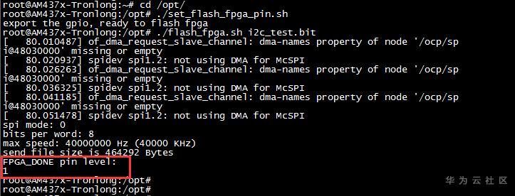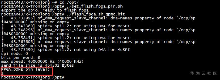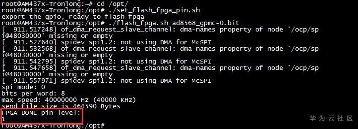 进入开发板文件系统的”/opt”目录,执行如下命令初始化FPGA程序加载功能的管脚。