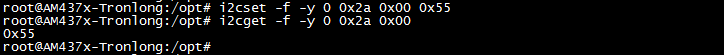 Target# i2cset -f -y 0 0x2a 0x00 0x55