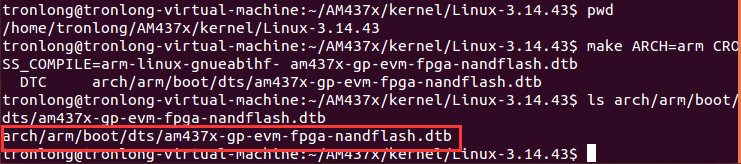 Host# make ARCH=arm CROSS_COMPILE=arm-linux-gnueabihf- am437x-gp-evm-fpga-nandflash.dtb