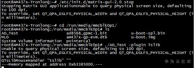 修改完成后,重新编译设备树,使用“arch/arm/boot/dts”目录下新生成的.dtb设备树文件启动开发板文件系统。ARM光盘”Demo\qt\AD8568_GPMC\bin”目录下的am437x-gp-evm.dtb为验证通过的设备树文件。