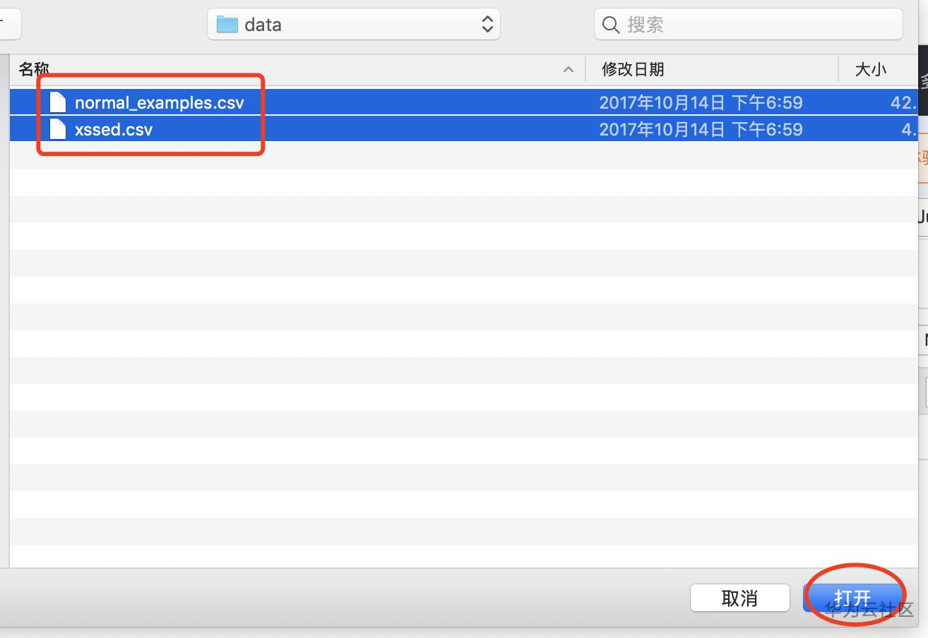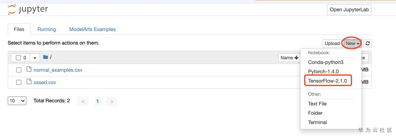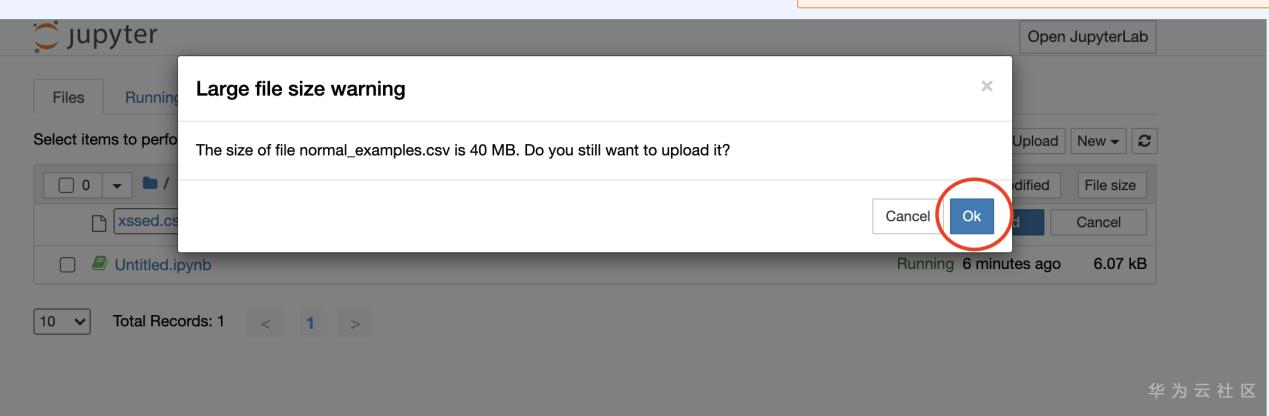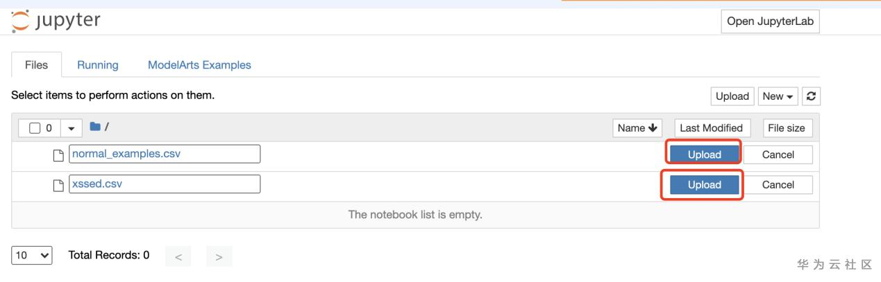 【摘要】 大家好,我是B站UP主白帽黑客教程我是一个专攻网络安全的秃头少年,有很多人想当黑客,在找漏洞的过程中要经常通宵甚至没效果又无比头大最终劝退,今天我给大家类举一下我用ModelArts解决这个事情的方法啦~第一步 创建一个Notebook 服务选好对应的配置,点击“下一步”打开Notebook会得到以下一个页面第二步 上传数据点击upload从本地选择需要上传的两个文件:normal_exam...
