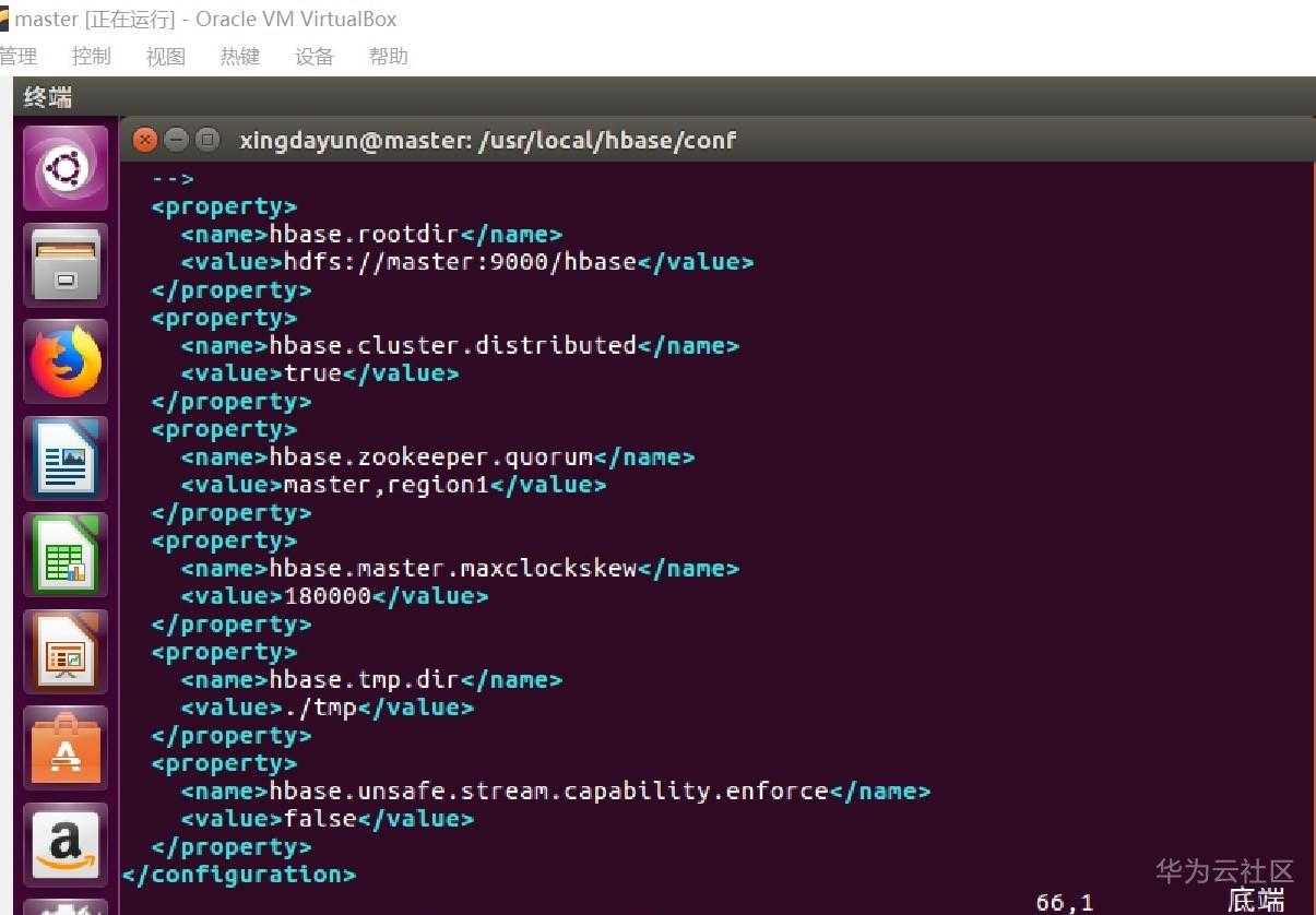 分别登录master、region1节点,将下载HBase文件解压,进行如下命令与配置: