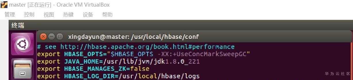 配置/usr/local/hbase/conf/目录下的hbase-env.sh、hbase-site.xml、regionservers文件。