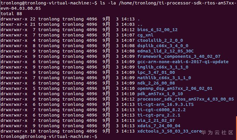 耗时约3min后安装完成,“/home/tronlong/ti-processor-sdk-rtos-am57xx-evm-04.03.00.05”安装目录内容如下图所示: