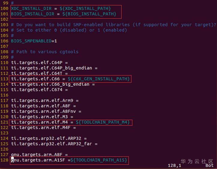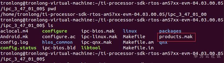 按照前面步骤配置好RTOS Processor-SDK环境变量,并替换TI RTOS Processor-SDK安装目录下的IPC开发包。进入ipc_3_47_01_00开发包目录,执行如下指令打开products.mak文件,参照如下方法配置IPC案例环境变量:
