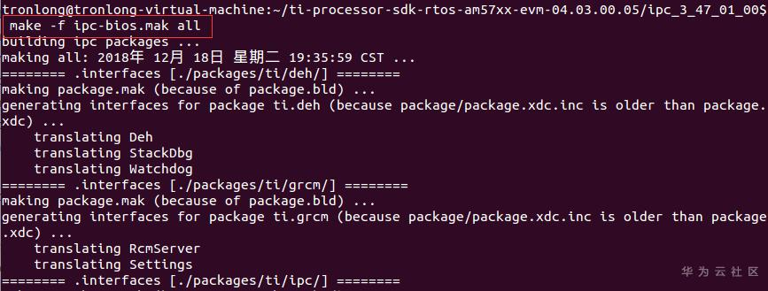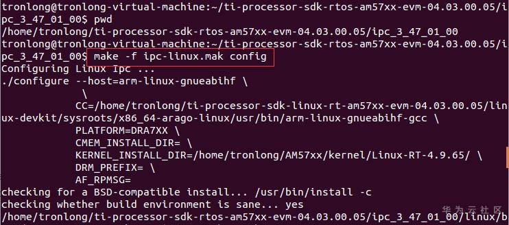 修改完成保存退出。在“/ti-processor-sdk-rtos-am57xx-evm-04.03.00.05/ipc_3_47_01_00”目录下,执行如下指令进行IPC编译配置并编译IPC链接库。