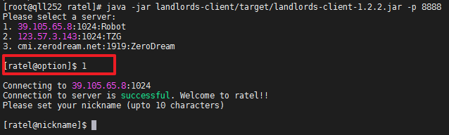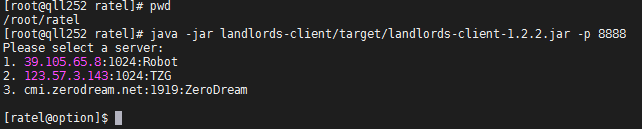[root@qll252 ratel]# java -jar landlords-client/target/landlords-client-1.2.2.jar -p 8888