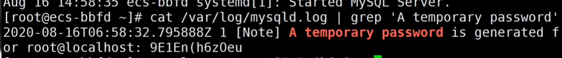 cat /var/log/mysqld.log | grep 'A temporary password'