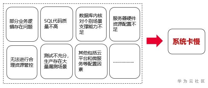 (5)无法进行合理的资源管控:因为业务要求或者数据库能力等原因,无法进行合理的资源管控,导致业务高峰期资源抢占严重,大面积业务出现卡慢甚至不可用。