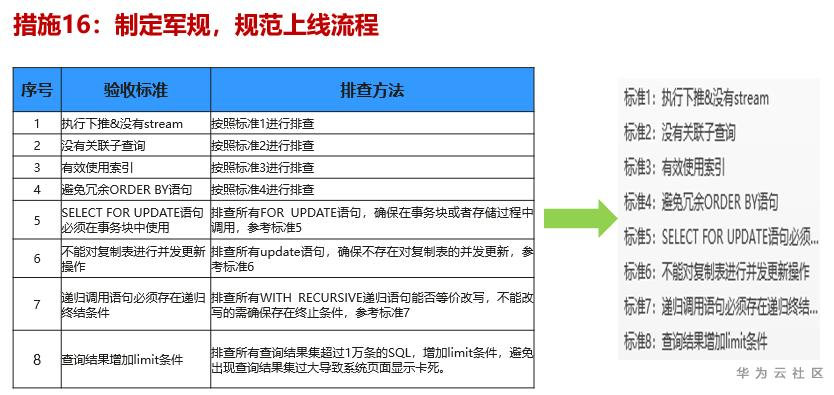 标准参考SQL语句上线验收指导相关内容:https://bbs.huaweicloud.cn/blogs/188162