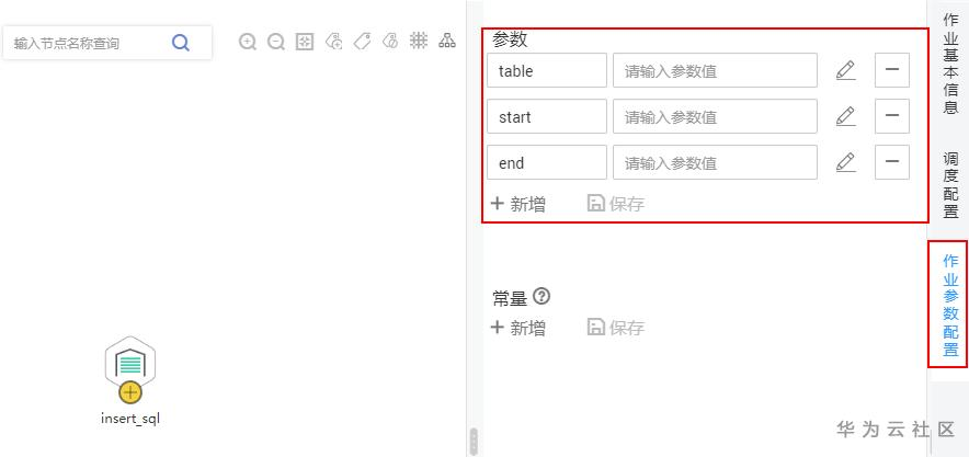 作业运行参数:子作业中定义的变量,在For循环算子中,可以配置为数据集中的某一列,也可以配置成一个固定值。