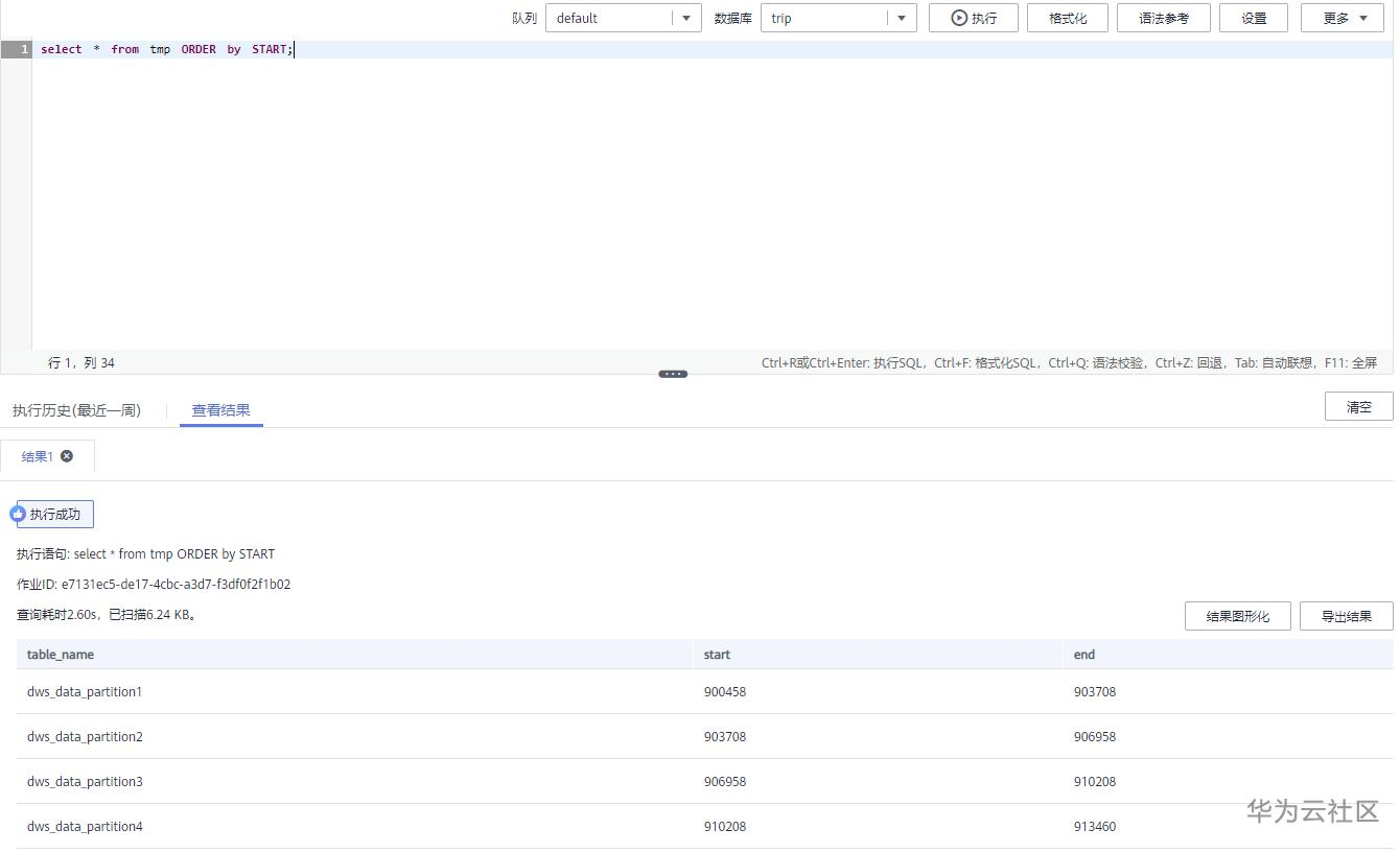 DWS SQL的语句中把要替换的变量配成${}这种参数的形式。在下面的SQL语句中,所做的操作是手动对dws_table这个表根据TripID字段做了分区,在SQL中,${table}、${start}、${end} 就是要替换的参数: