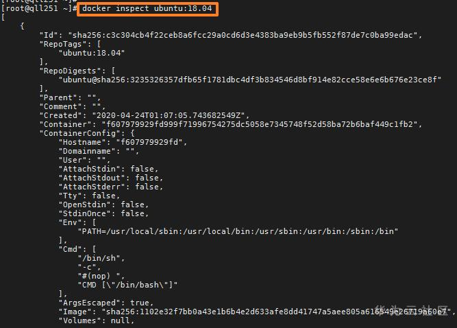 docker inspect ubuntu:18.04