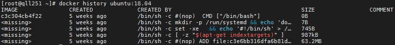3)使用history命令查看镜像历史