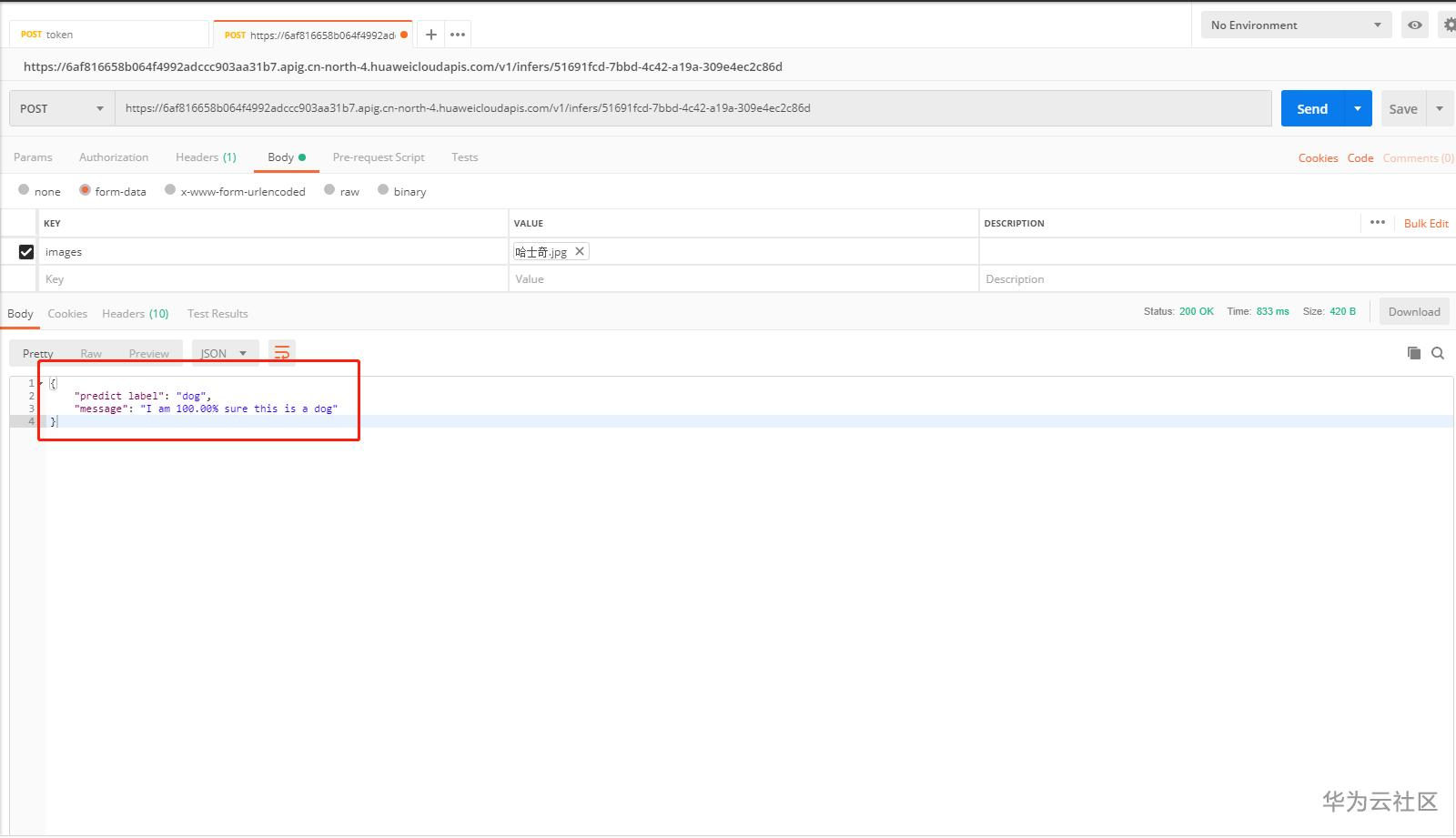 【2020华为云AI实战营】Dog and cat recognition项目Postman调用线上API实践