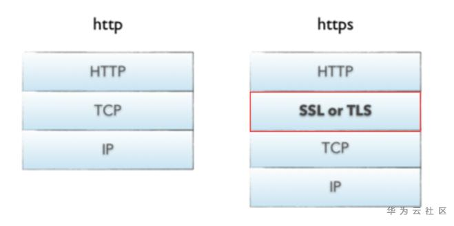 提到https,就会立马联想到http,二者的区分如下图所示,可以看出https在TCP和HTTP协议之间加了一层SSL协议。相较于http,https保障安全的机制可以总结为如下3点: