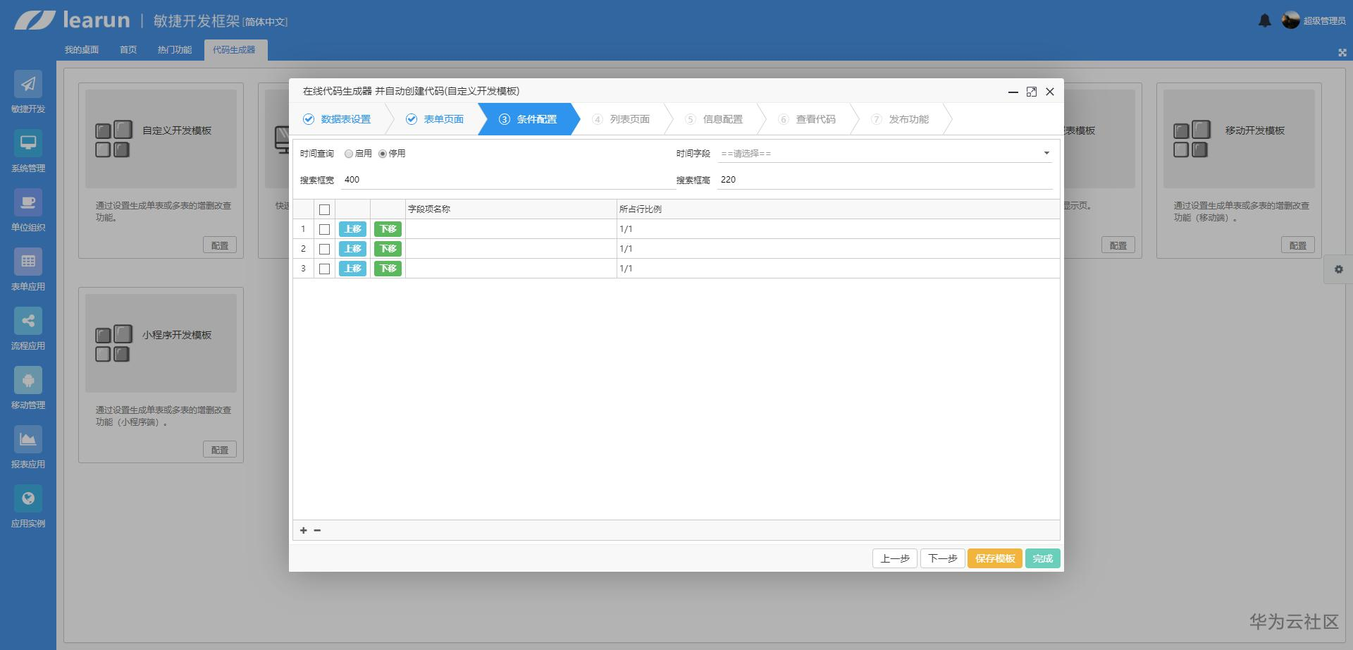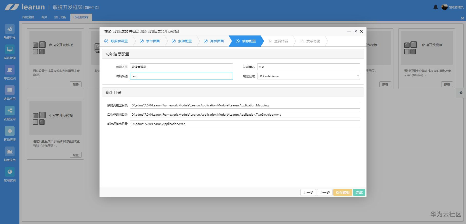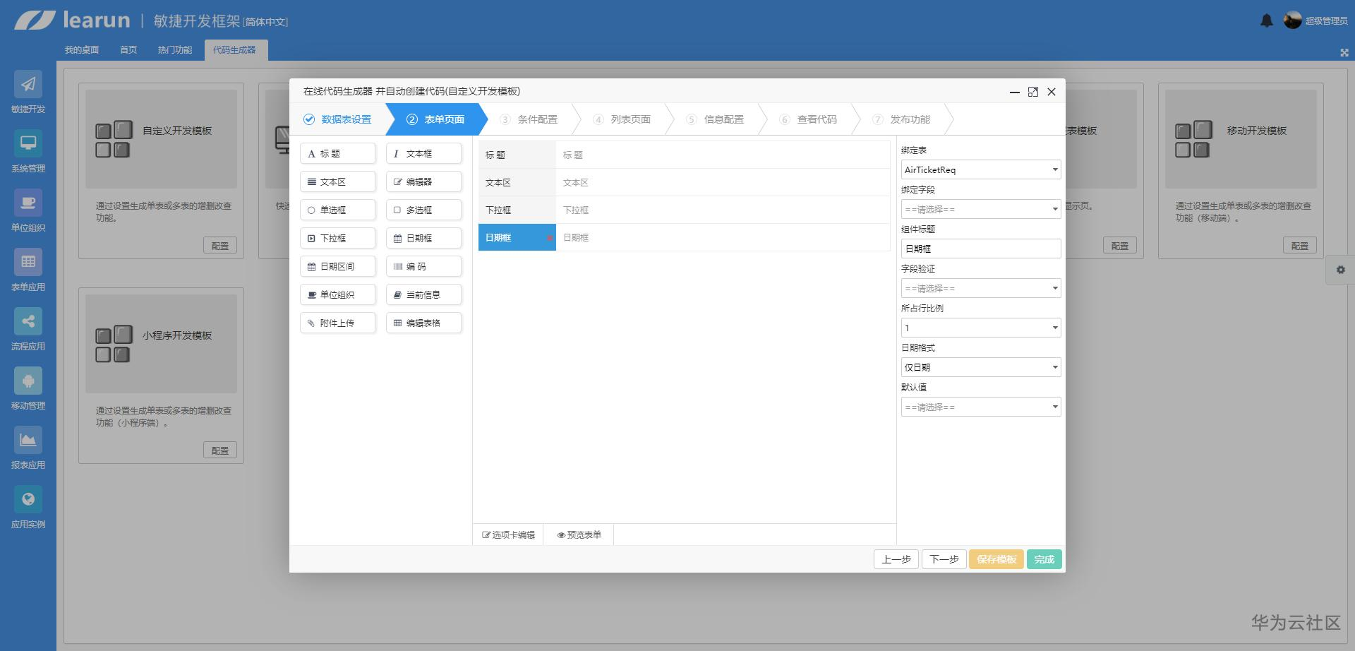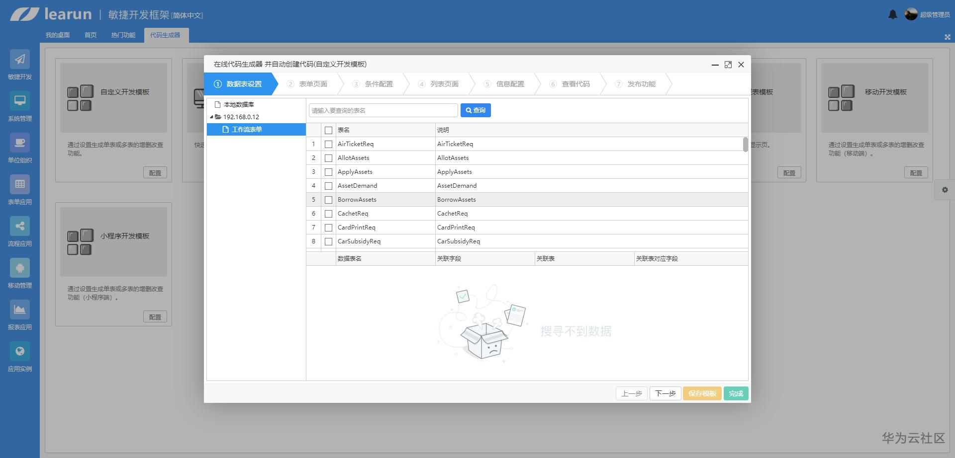 自定义开发模板:通过设置生成单表或多表的增删改查功能。