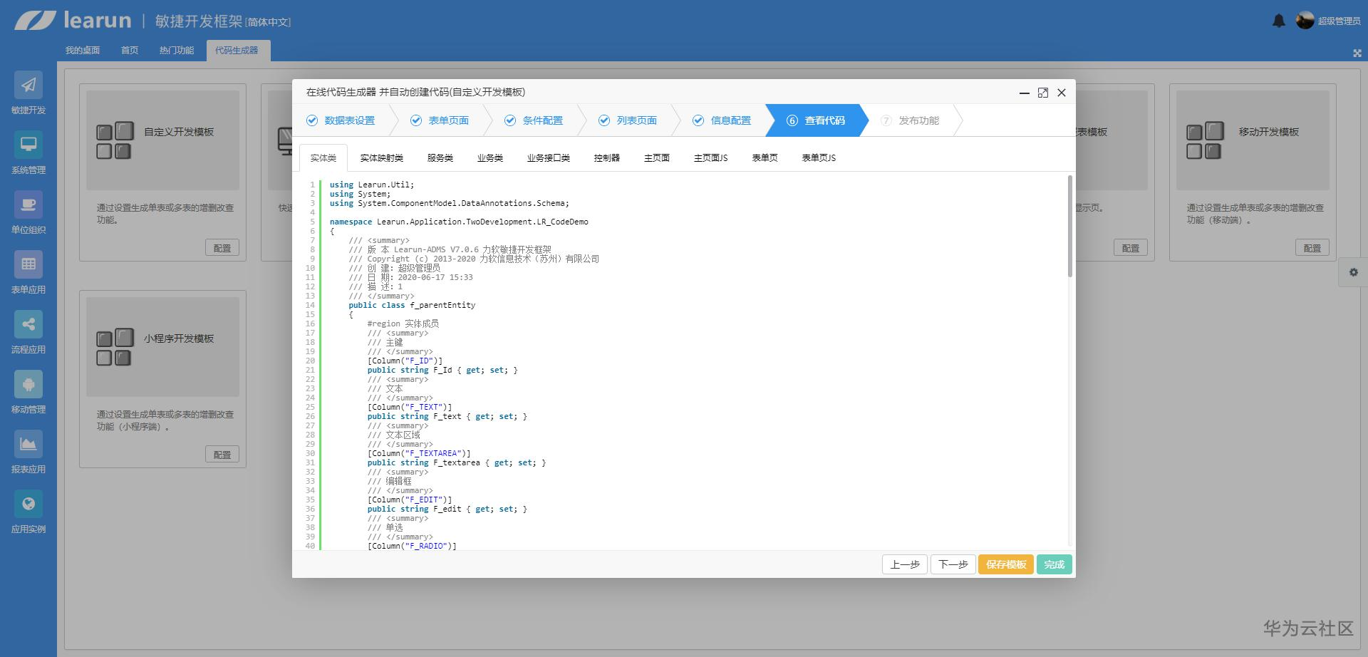 LR.NET代码生成器将各种常用开发场景集成为一套套开发模板,选择合适模板进行套用,会有详尽直观的向导系统指导开发者一步步操作如需开发逻辑稍显复杂的业务仅需按要求稍作修改即可而且力软是源码授权的使用模式,如果有更复杂的开发需求,做更深层次的扩展也很便捷,可谓是最省心的开发平台