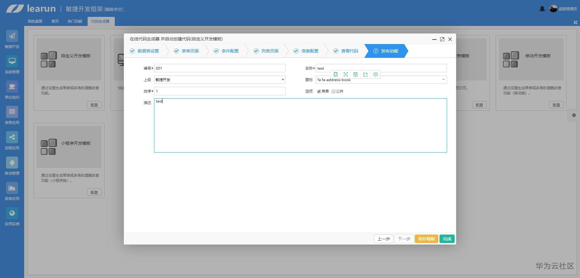 快速开发模板:快速生成必要的类和页面。