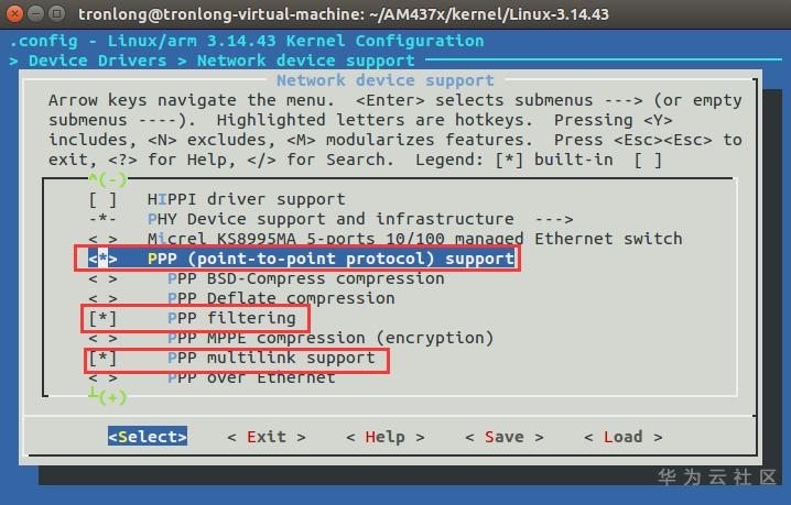 点击“Device Drivers—> Network device support”勾选以下选项,添加ME3620模块所需网络功能。