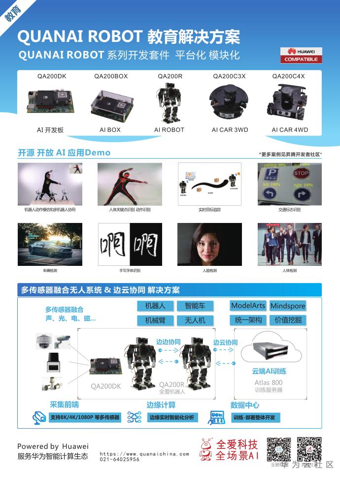 以超小体积提供超强算力,支持锂电池供电,推动小型无人系统进入双目4K实时视频分析阶段。全爱科技推出机器视觉系列产品,专为教育行业打造。推出模块化的机器人和教育平台,应用案例。服务于华为智能计算生态。