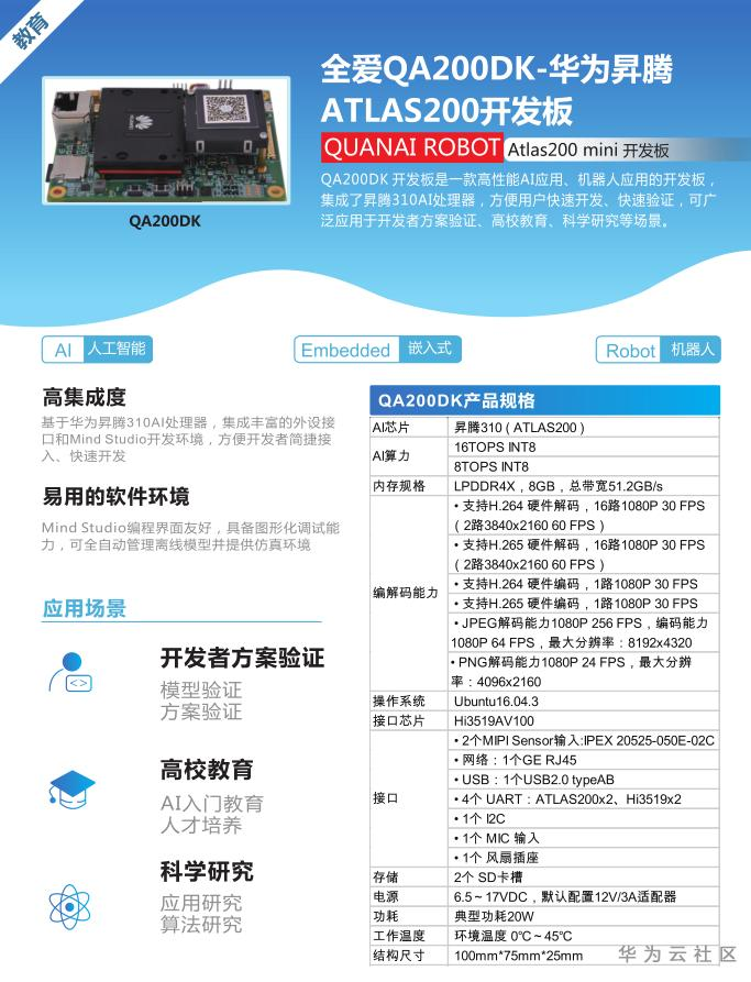 全爱 QA200DK 采用ATLAS200+Hi3519设计的开发板及开发套件 16T算力 支持双路4K
