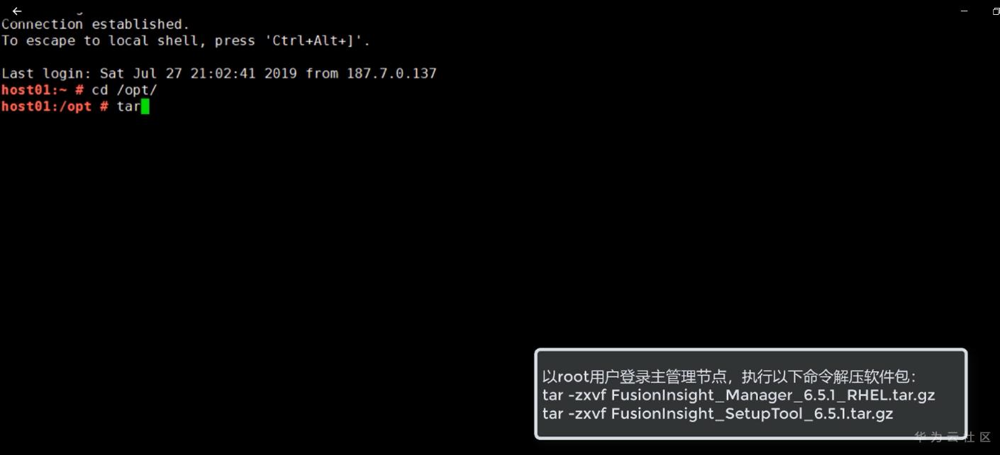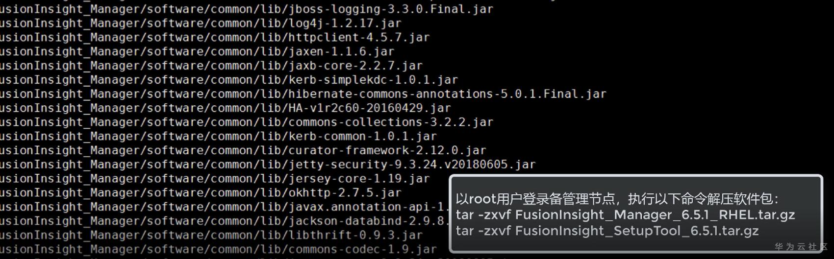 cd /opt/ tar -zxvf FusionInsight_Manager_6.5.1_RHEL.tar.gz tar -zxvf FusionInsight_SetupTool_6.5.1.tar.gz