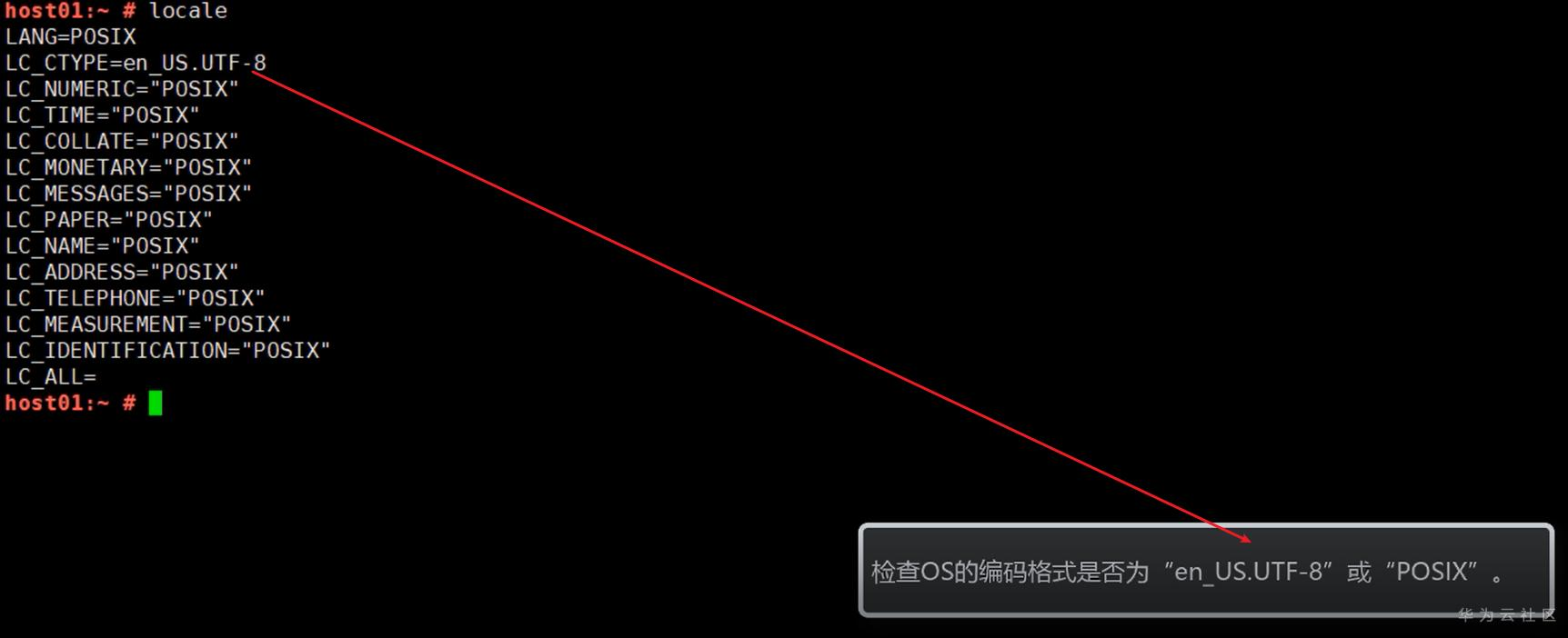 检查OS的编码格式"en_US.UTF-8"或"POSIX"。
