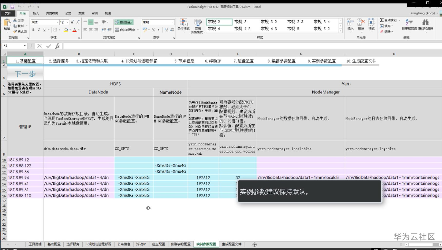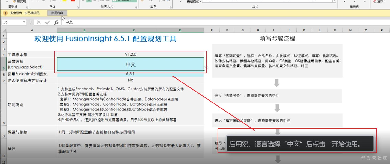 1.打开FusionInsight 6.5.1 配置规划工具,启用宏,语言选择"中文"后点击开始使用