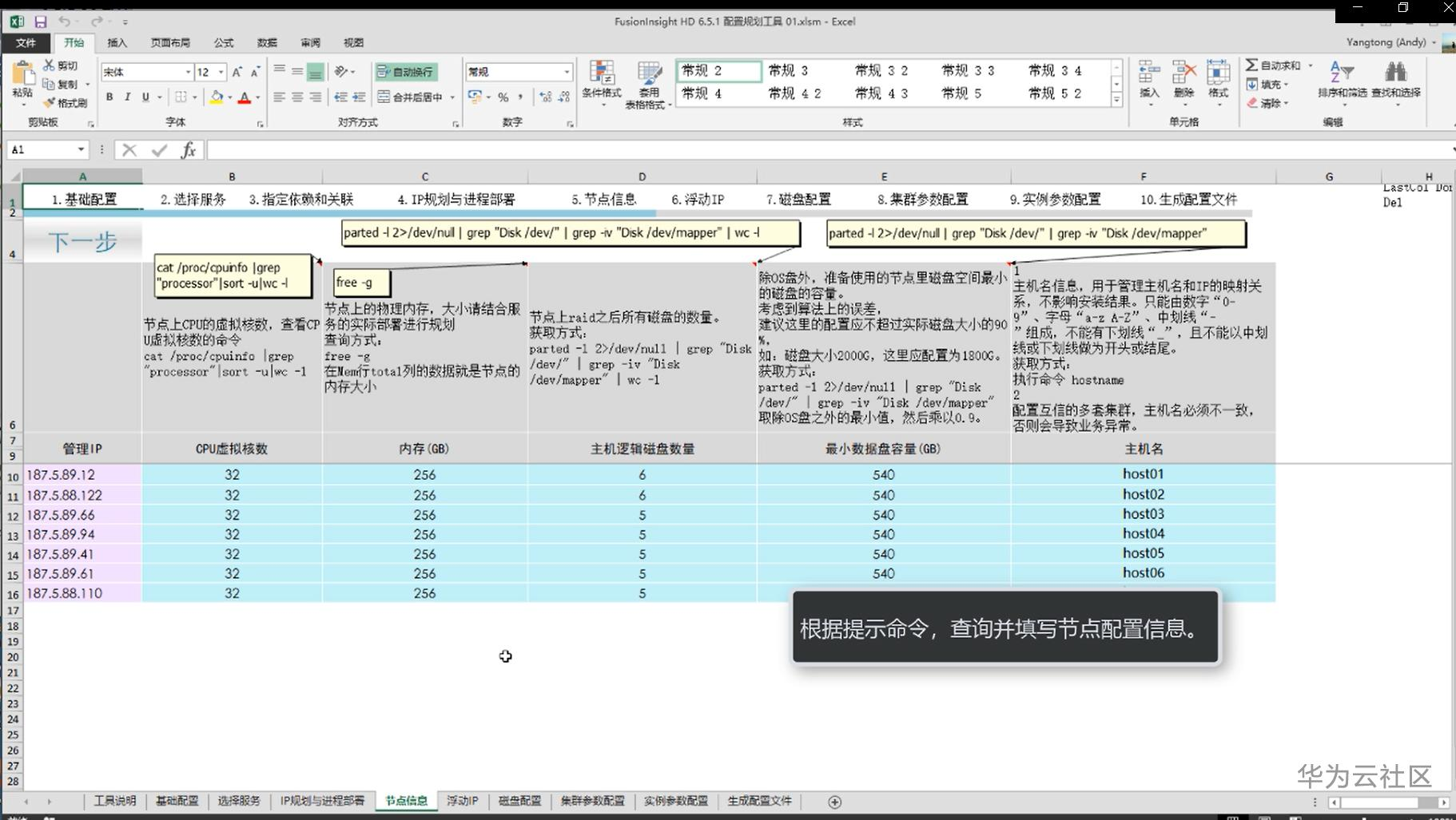 4.在节点信息页签,根据提示命令,查询并填写节点配置信息。