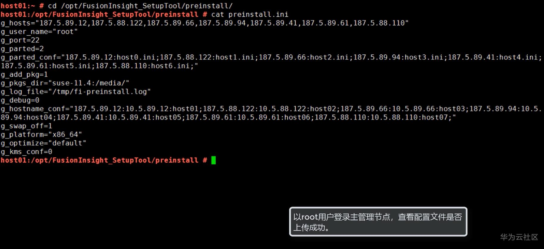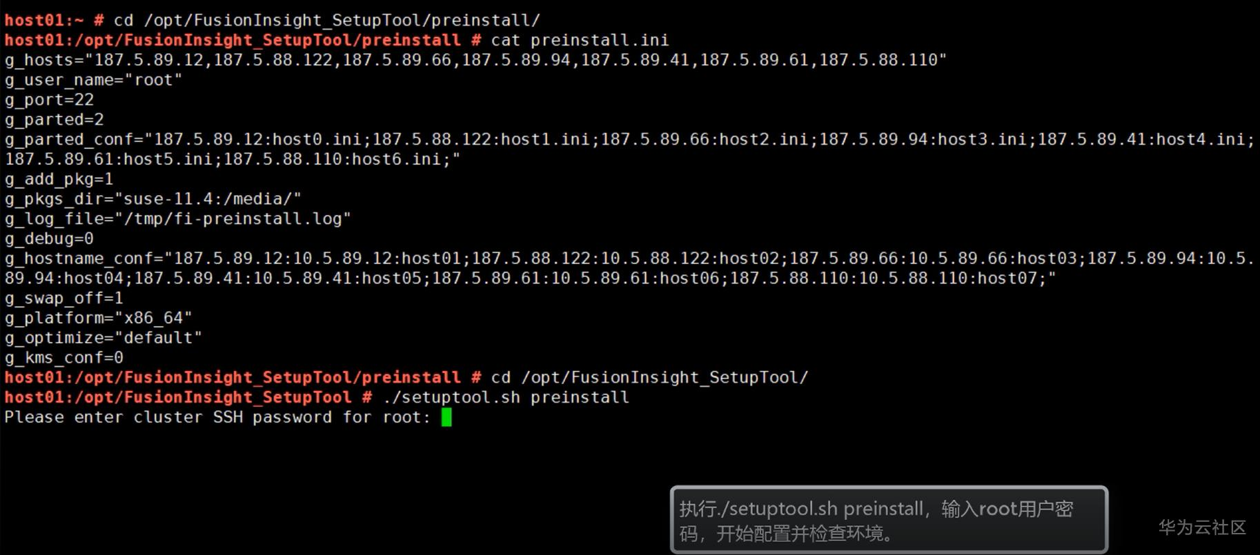 cd /opt/FusionInsight_SetupTool/preinstall/ cat preinstall.ini