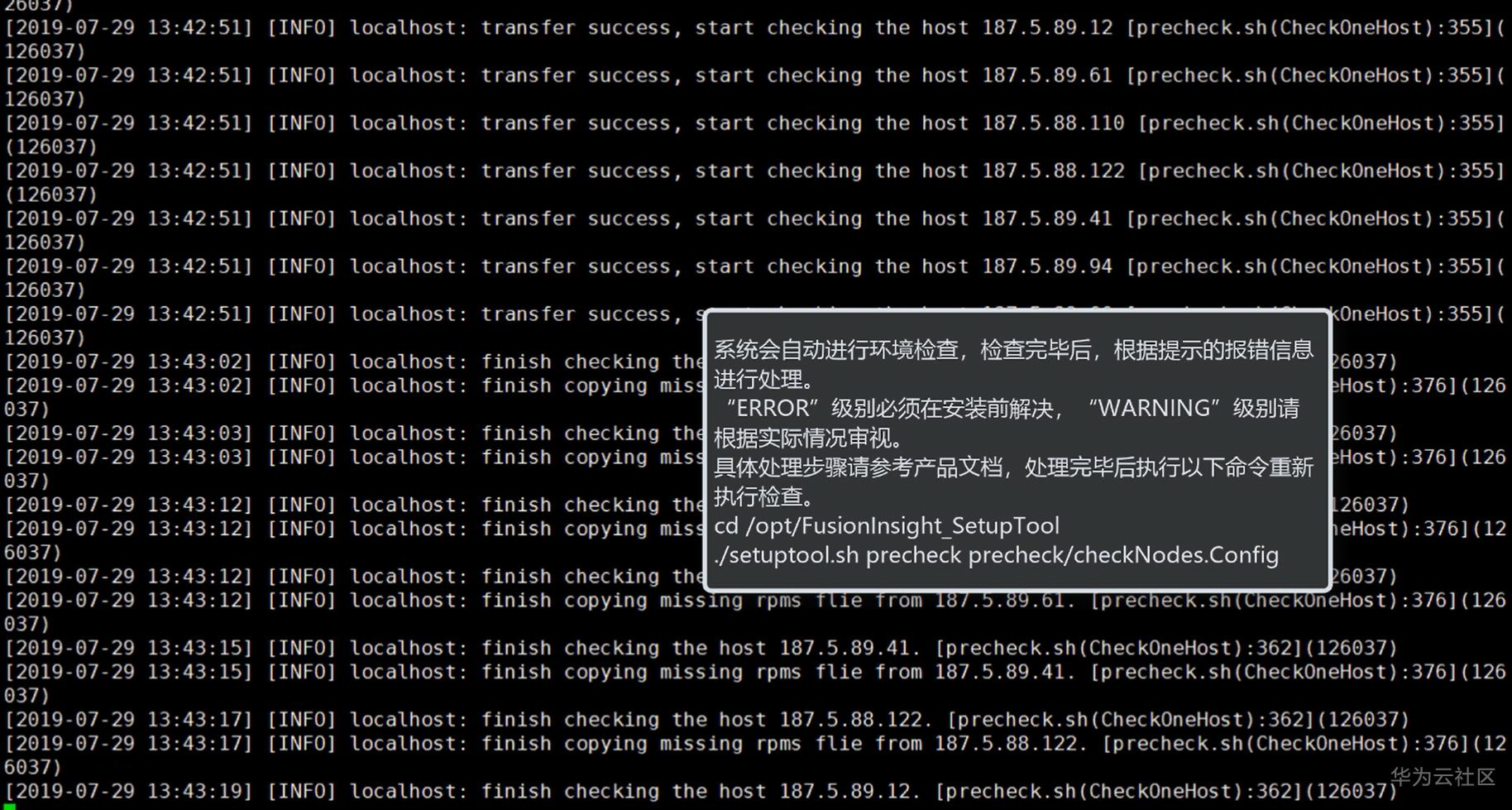 cd /opt/FusionInsight_SetupTool ./setuptool.sh precheck/checkNodes.Config